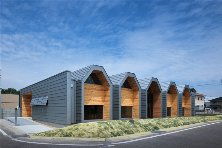 本案托儿所位于福冈市附近的太宰府市,为了容纳更多的孩子,不得不增加为两个班级。考虑到日本全国范围的出生率下降,不久的将来这里的孩子数量可能会减少,因此建筑师决定建造一座只有一室空间(9米跨度)的建筑,内部没有支柱,方便各种用途(游戏室等)的转换。木桁架梁在工厂安装,用拖车运送到施工现场。复杂的连接也是在工厂制作的,只有一个相对容易的连接在现场组装。这样的方式提高了施工精度,缩短了施工工期。