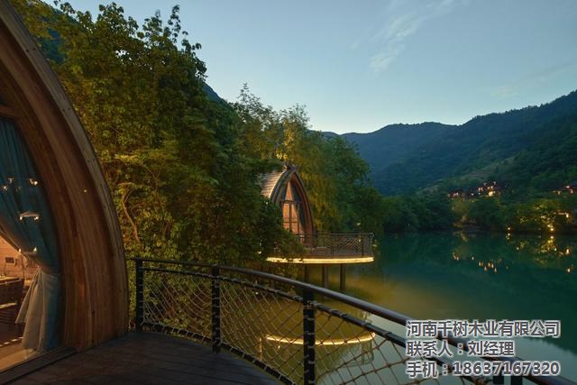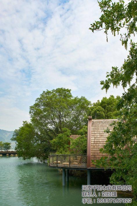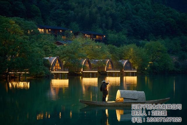 本项目是杭州富春开元芳草地乡村酒店的一组特色船屋客房。酒店坐落在建德富春江畔,梅城古镇东约五公里处,而船屋则“漂浮”在酒店30亩湖面西岸。