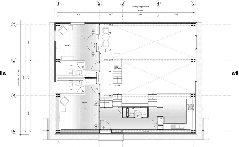 4个14.50 m跨度的sal木框架由多个胶合木板和薄钢拉杆组成,支撑着整个用木材覆盖的屋顶、隔热的建筑外壳、整个木质的夹层,并塑造了标志性的双层玻璃天窗。整个房子被悬挂在这些坚固的桁架框架中,没有任何中间柱的支撑,使得一种不受干扰的地形轮廓流进入静谧的松木镶板的室内空间。精心雕琢的方形窗户,朝向各个方向,让使用者得以禅观各个山峰和不断变化的云。
