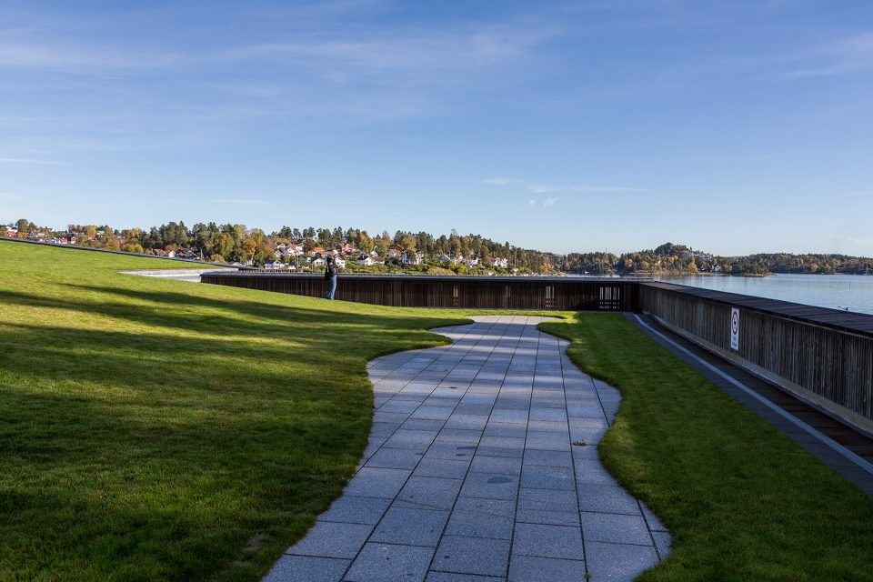 Holmen水上运动中心位于Holmen海滩,这里经过填海造陆,保护和巩固了场地的自然属性。整个场地被花园覆盖,为海滩带来非凡的美景。该项目旨在活化建筑的屋顶,使之成为海滩休闲区域的一部分。铺满植被的屋顶向南面倾斜,在Oslo fjord的群岛和礁石之上形成连续不断的景观。主入口、接待处、更衣室和游泳池皆位于建筑的主楼层,凌驾于向建筑方向倾斜的草坪之上。低处的楼层则容纳了体育馆、多功能厅、设备间以及办公设施等。
