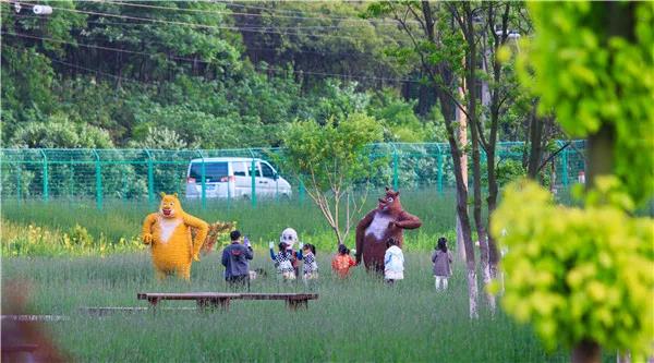 沿着水系走走步道,青草松软的香气,松鼠咯吱咯吱的声音,南归的燕儿衔泥筑巢的身影,这是人间四月的限定。