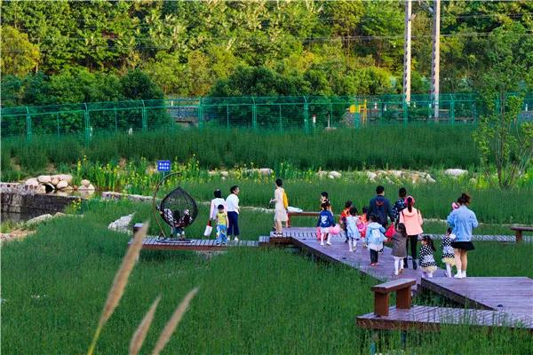 而今,父母带着孩子们花海中的帐篷噙香而眠,在水域捕鱼捉虾,在郊野体验极致运动,在稻田采摘喂养,站在山上看泼河水库波光淋漓,散落的豫南民居炊烟袅袅。依然朴实而美好。