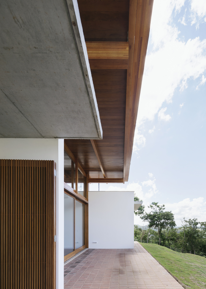 被草坪覆盖后,它们形成了新的楼层,使得观景台的结构布置有个空中的穹顶做保护。所有与外部相连的空间和它们之间的联系被再次强化作为给每一处环境的空间结构塑形的元素的拓展。这种向外的空间延申在墙体的布局的连续性的中可以被看到,混凝土雨棚,门廊楼层——富有泥土气息的腔调暗示着该地区的泥土风情。这种刻意避免严格限定的风格追求创造一种外部壳体,强化它与周边景观的联系。