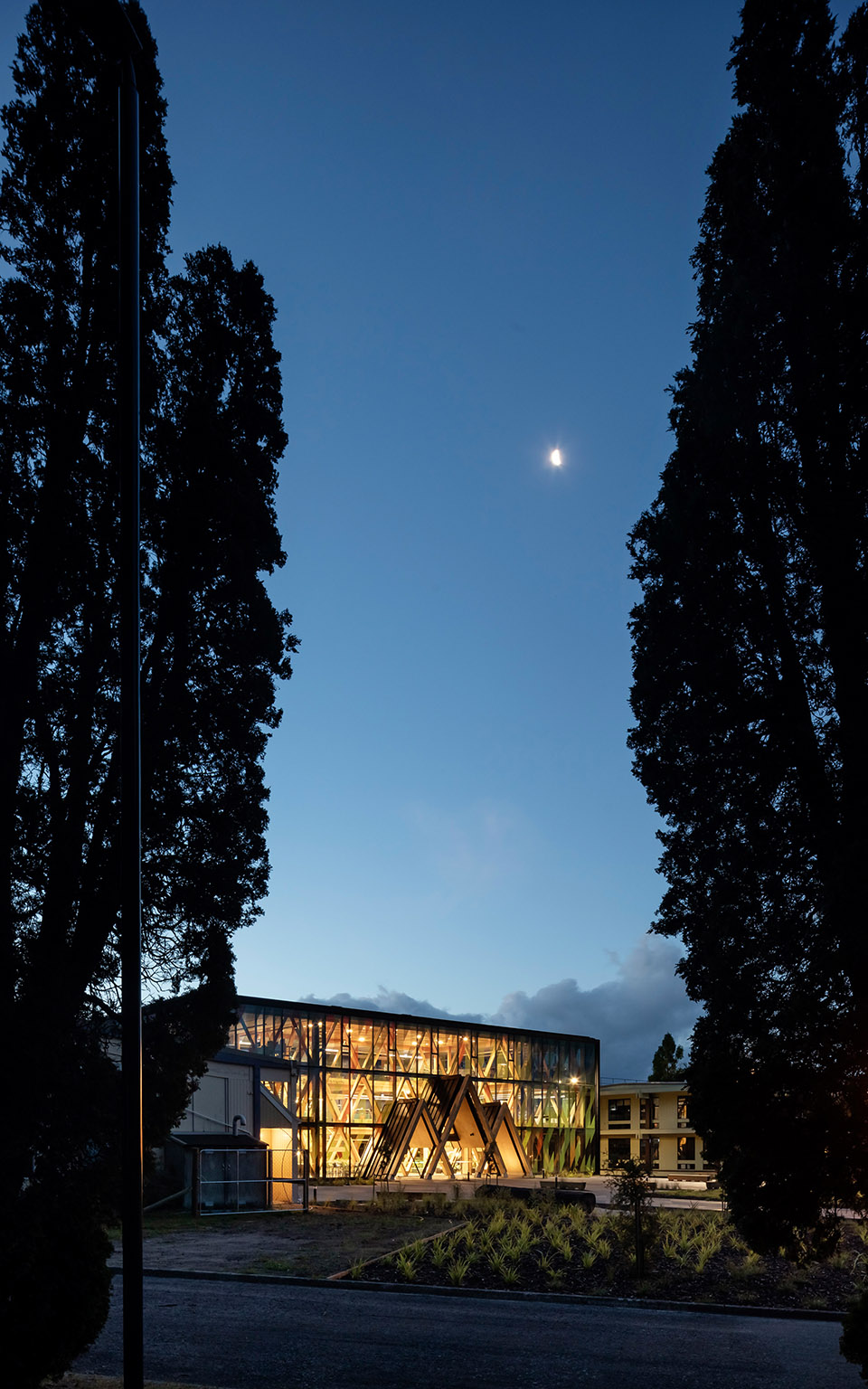 “Te Whare Nui o Tuteata”木材创新中心的落成代表了新西兰逾十年来在木材研究上的进步与技术的成熟,木材不再是仅仅作为支撑结构被简单地组合在一起,而是被概念化了。该项目旨在造福未来,并鼓励公众参与到环境保护的大潮中。通过更加深入地思考木材的优势,以及开发更加优质的预制与拼装木结构建筑,“Te Whare Nui o Tuteata”成功地向大众作出了一场具有全球意义的科学演示,向人们展示出如何建造更好的明天。